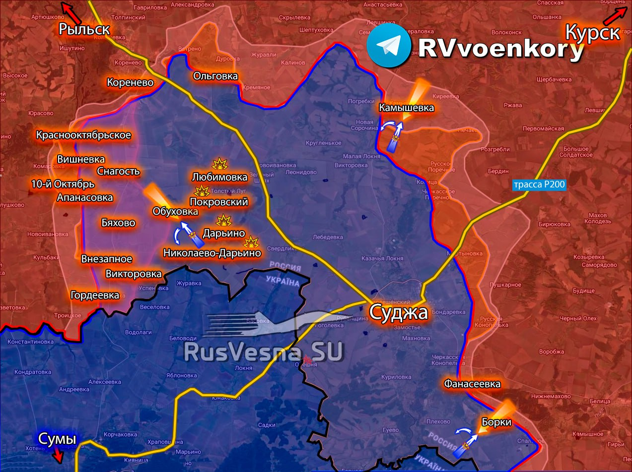 Tình hình ở khu vực Kursk hiện rất khó khăn và sẽ tiếp tục như vậy trong một thời gian nếu giao tranh vẫn tiếp diễn. Thời gian kéo dài của trận chiến giờ đây phụ thuộc cả vào khả năng của quân đội Nga trong việc thực hiện các cuộc tấn công nhanh chóng theo những hướng bất ngờ và vào khả năng của Lực lượng vũ trang Ukraine làm điều tương tự. Quân đội Ukraine đã tiến hành cuộc tấn công vào quận Glushkovsky.