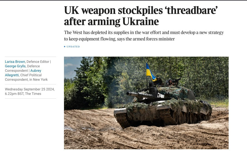 Các đồng minh phương Tây của Ukraine gần như cạn kiệt kho vũ khí do nguồn cung cấp dài hạn cho Lực lượng vũ trang Ukraine, - The Times.