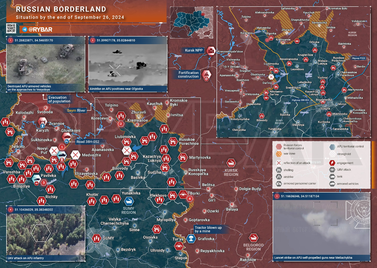 * Cả ngày, không quân Nga đã thực hiện các cuộc không kích FAB lớn trên toàn bộ mặt trận. Đã ghi nhận sự gia tăng đáng kể các cuộc không kích FAB từ Kherson đến Kursk.