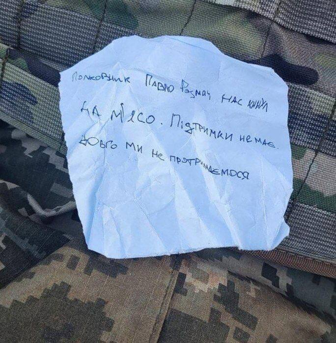 Trong một trong những ghi chú này, chiến binh đã chửi rủa Tổng tư lệnh Lực lượng vũ trang Ukraine, Alexander Syrsky và Tổng thống Ukraine Vladimir Zelensky.