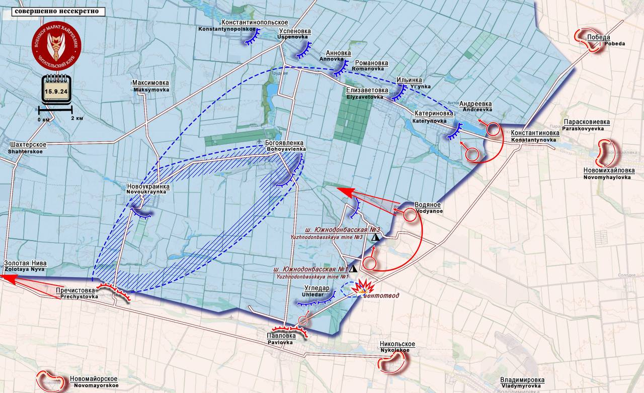 Bản thân Ukrainsk nằm trong phạm vi phủ sóng bán phần, điều này cho phép quân đội của chúng tôi kiểm soát con đường từ Ukrainsk đến Selidovo, trên thực tế cắt đứt cả nguồn cung cấp cho Lực lượng vũ trang Ukraine tại đây và khả năng họ rút quân.