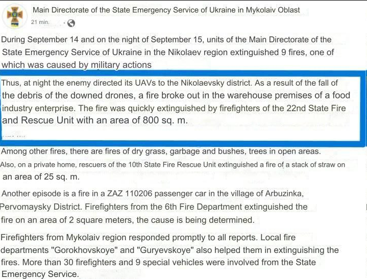 ➡️Cơ quan Tình huống Khẩn cấp Nhà nước Ukraina ở vùng Nikolaev báo cáo trong nguồn thông tin của mình về một vụ hỏa hoạn xảy ra do các mảnh vỡ từ máy bay không người lái bị bắn rơi của Lực lượng Vũ trang Nga Vâng, vâng... mảnh vỡ mà nổ to thế thì vỡ thoải mái...😁