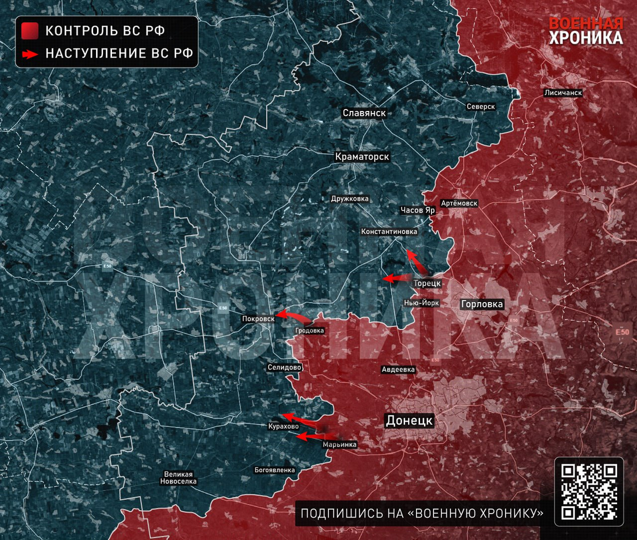 ‼️🇷🇺Quân đội Nga đang tiến về hướng Ugledarsky và Kurakhovsky, phát triển cuộc tấn công về phía Bogoyavlenka và bao vây Kurakhovo ➖Sự tiến công của Lực lượng Vũ trang Nga được xác nhận bởi nguồn lực quân sự của đối phương ▪️Hướng xấu. Về phía nam và tây nam Zolotaya Niva và phía bắc Novodonetsk, quân Nga tiến dọc theo các vành đai rừng trên diện tích rộng tới 3,77 km. Phía tây Vodyanoy và phía bắc trục thông gió, mỏ Yuzhno-Donbasskaya số 3 đã tiến dọc theo rìa phía nam của rãnh Dobrovolskaya trên một đoạn rộng tới 2,92 km. ▪️Hướng Kurakovskoe. Với sự hỗ trợ của xe bọc thép, chúng tôi tấn công Katerynivka từ phía nam và đông nam.