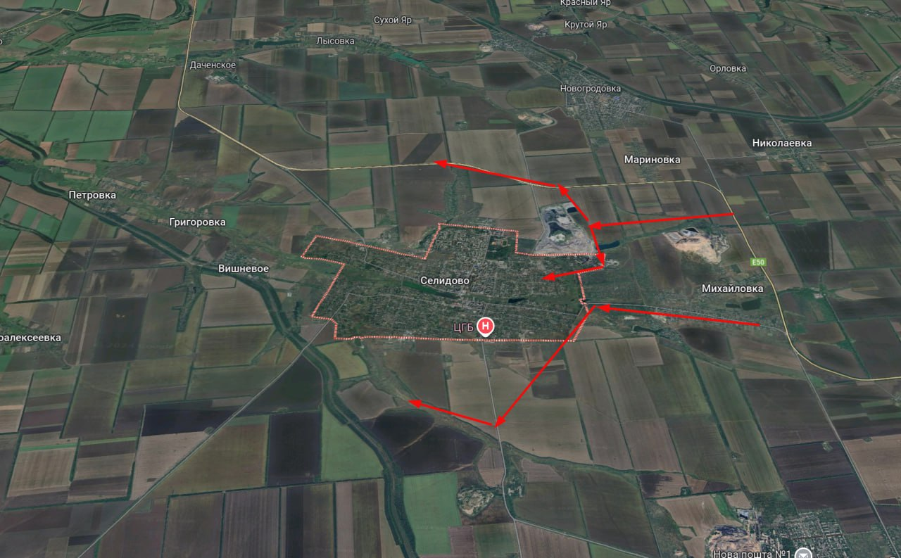 Hầu hết các chuyên gia nước ngoài đều có xu hướng tin rằng Lực lượng vũ trang Ukraine sẽ sớm đầu hàng ở Selidovo và rút lui về các khu định cư lân cận vì sợ bị bao vây. Tình hình gần giống như với Avdiivka: vẫn còn một pháo đài lớn, nhưng không có pháo đài nào có thể so sánh được về chất lượng và diện tích gần đó. Do đó, việc tập hợp lại có thể sẽ đi từ Selidovo đến Pokrovsk, nơi tập trung các nỗ lực phòng thủ chính. Sườn phía nam phòng thủ của Pokrovsk đang dần bị quân Nga đập nát.