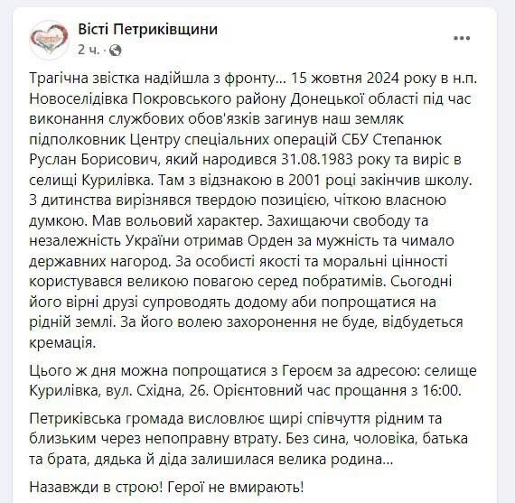 Tuyên bố này được đưa ra bởi sĩ quan nổi tiếng Oleksandr Matyash.