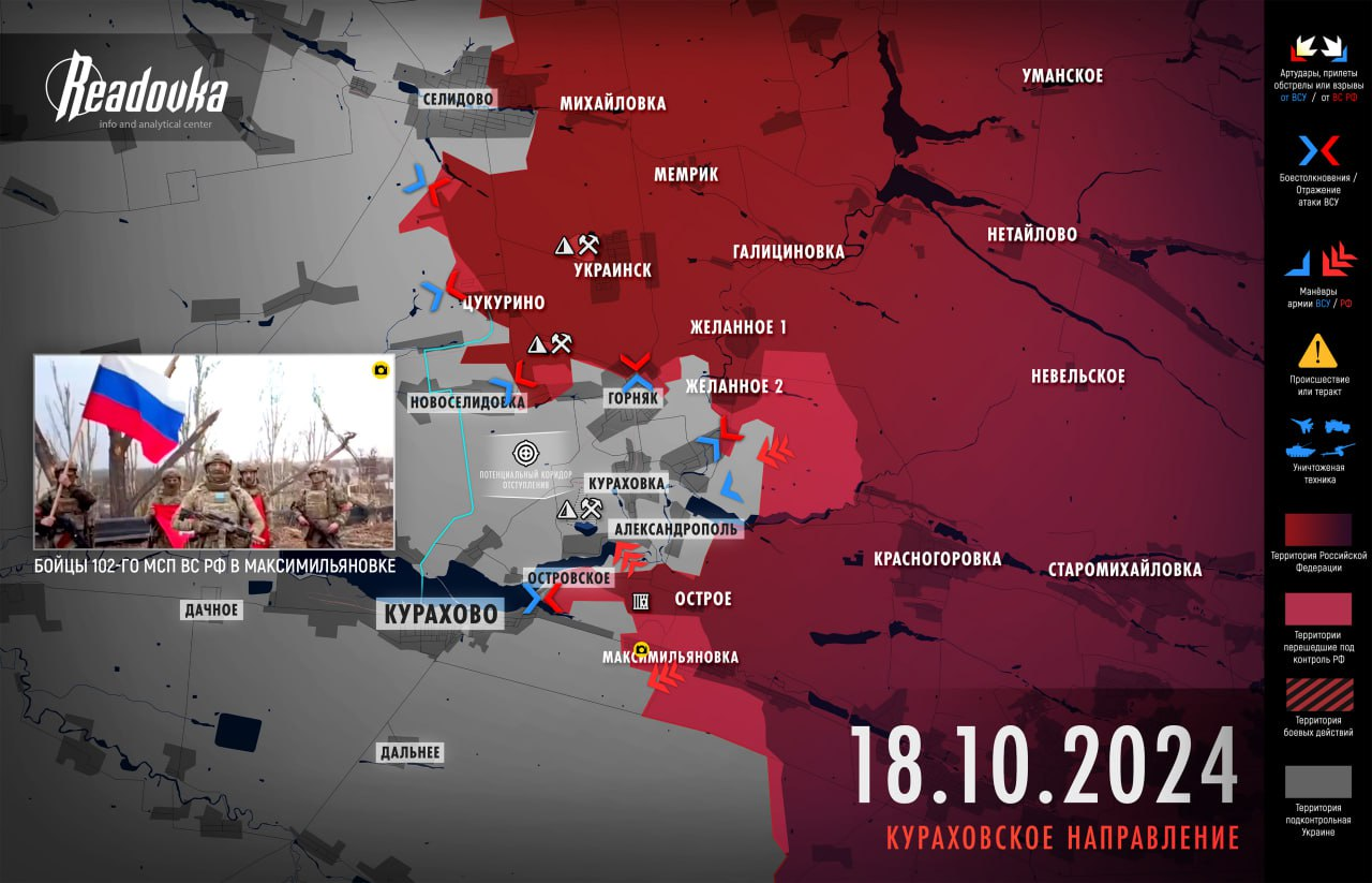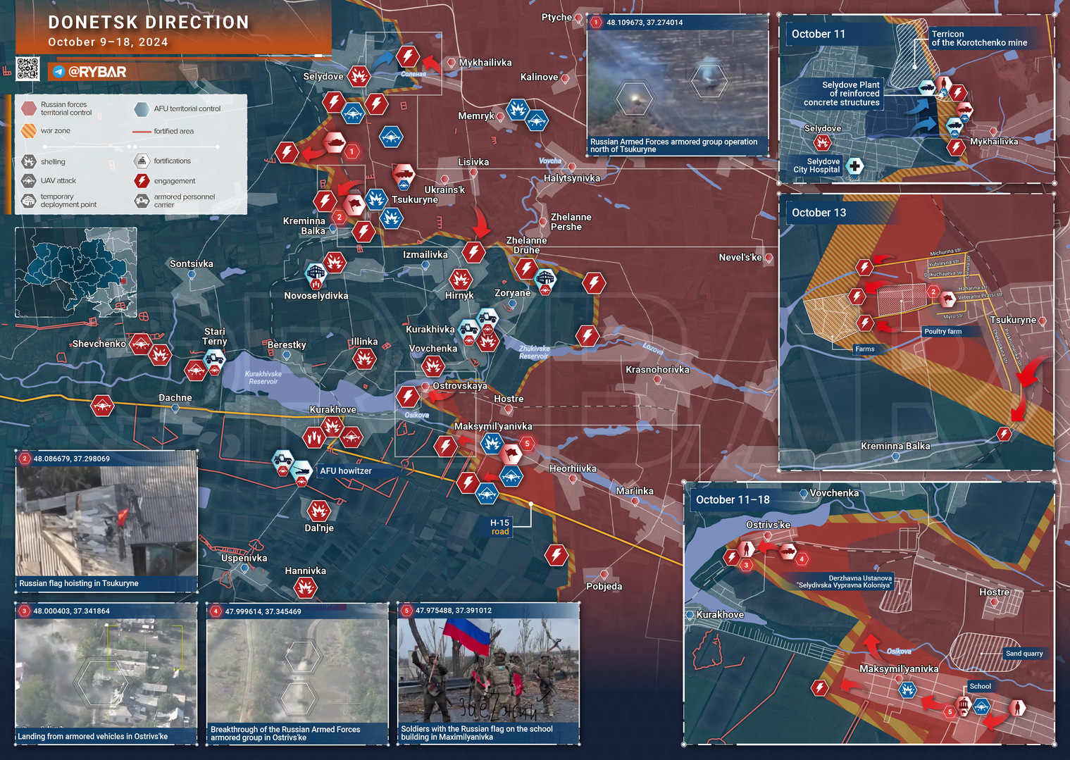 🇷🇺🇺🇦 Donetsk Hướng: Giải phóng Ostrovskoye, Tsukurino và Maksymilianivka Tình hình tính đến cuối ngày 18 tháng 10 năm 2024