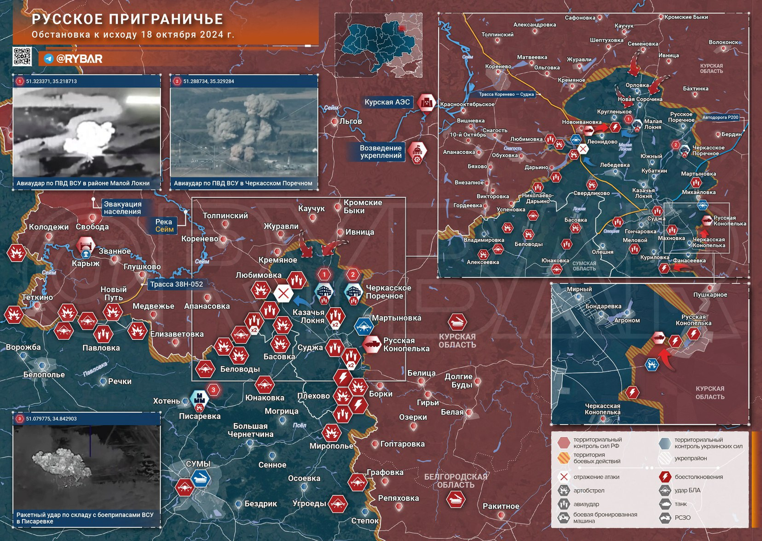 Theo hướng Kursk, Lực lượng vũ trang Nga đã giải phóng Novoinanivka và đang tấn công về phía Mala Loknya, cũng như tiến vào khu vực Russkaya Konopelka.