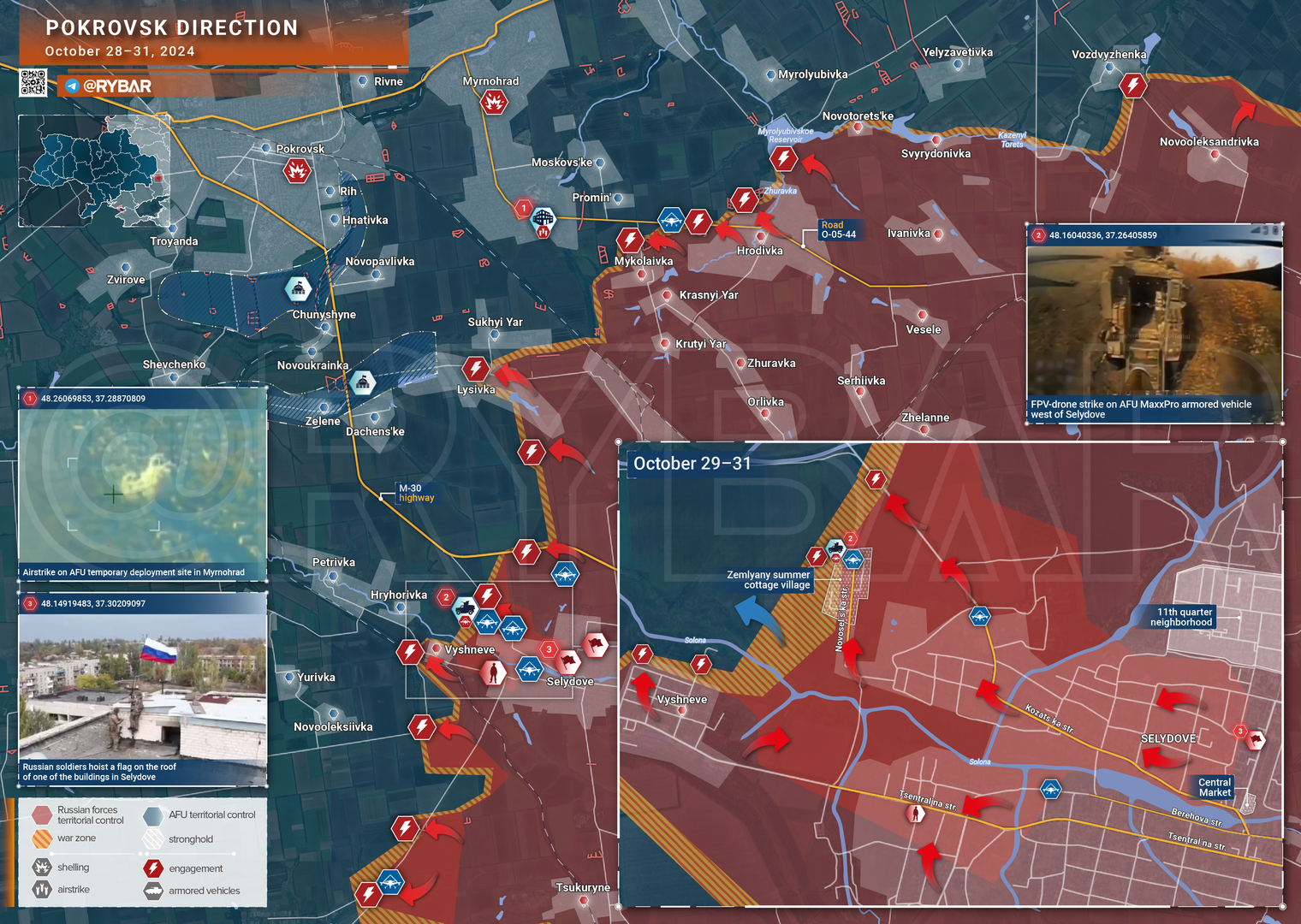 🇷🇺🇺🇦 Pokrovsk Hướng: Giải phóng Selidovo Tình hình tính đến 7:00 PM ngày 31 tháng 10 năm 2024