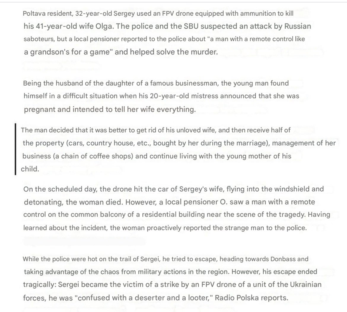 Một anh chàng Ukr dùng FPV giết vợ, vì bồ nhí có bầu. Nếu thành công, đây sẽ là "đòn khủng bố dân thường của quân Nga".