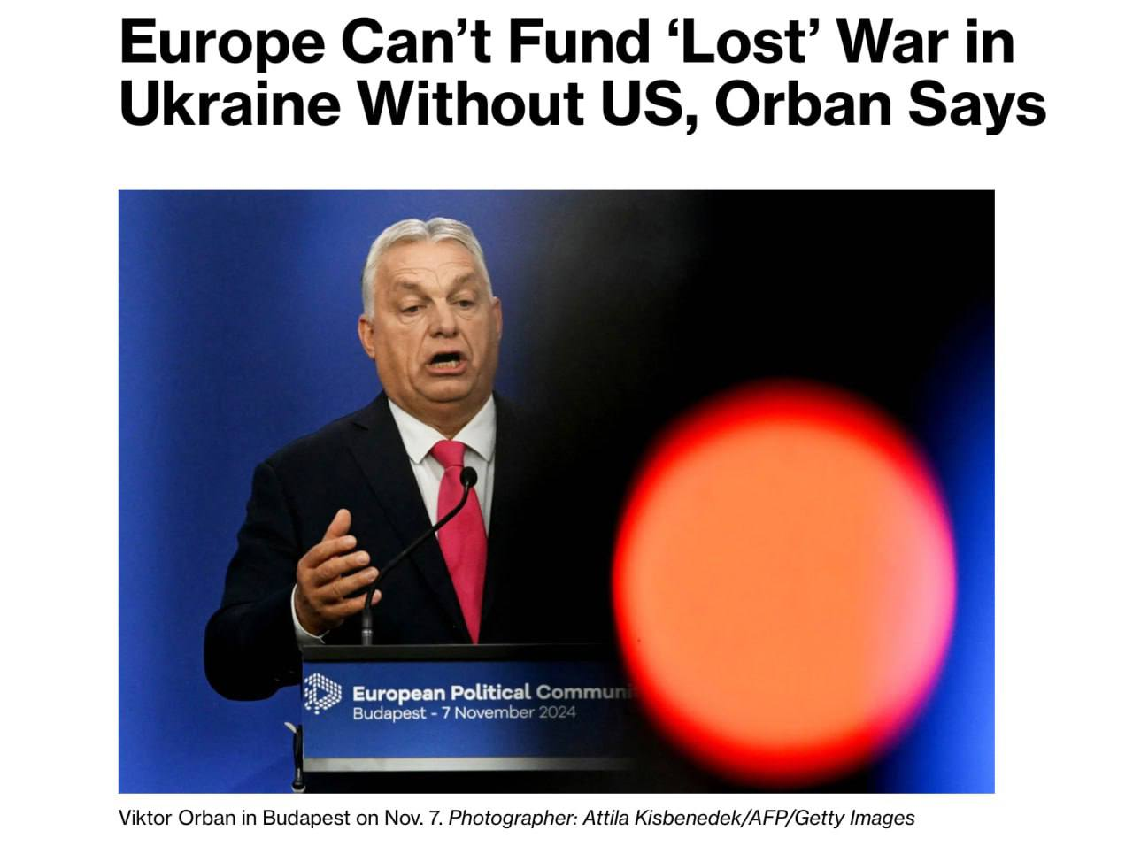 Thủ tướng Hungary Viktor Orban nói với các phóng viên sau cuộc họp của các nhà lãnh đạo châu Âu tại Budapest rằng khoản viện trợ 50 tỷ euro từ Mỹ và châu Âu dành cho Ukraina vốn đã được thống nhất bây giờ lại trở thành một “câu hỏi chưa có lời đáp” sau khi Donald Trump chiến thắng trong cuộc bầu cử.
