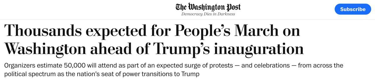 Các đối thủ của Trump đang lên kế hoạch cho một "cuộc tuần hành của người dân về Washington" vào đêm trước lễ nhậm chức của ông, The Washington Post đưa tin.