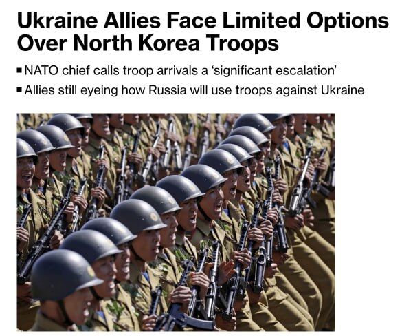 ▪️Nếu điều này xảy ra, thì do CHDCND Triều Tiên cung cấp cho Nga, các nhà sản xuất pháo lớn nhất thế giới sẽ tham gia vào cuộc chiến. ▪️Việc quân Triều Tiên tiến vào khiến các đồng minh của Ukraine nhận ra rằng họ có rất ít khả năng đáp trả nếu không làm trầm trọng thêm xung đột. ▪️Tổng thư ký NATO Mark Rutte lần đầu tiên xác nhận việc triển khai sau cuộc họp giao ban của các quan chức cấp cao Hàn Quốc tại Brussels và gọi đây là một “sự leo thang đáng kể” về việc Bình Nhưỡng can dự vào cuộc chiến của Nga.