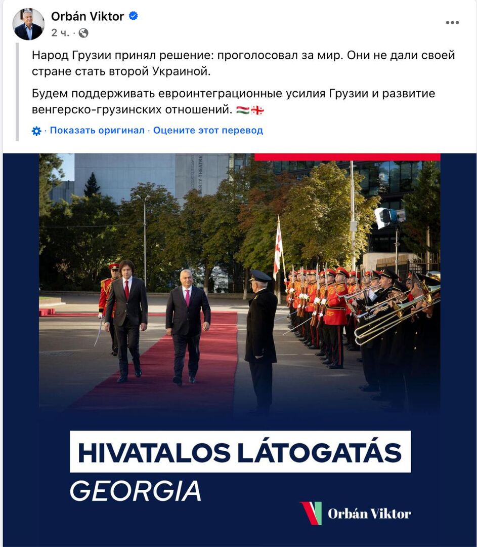Thủ tướng Hungary tại Tbilisi nói rằng chiến thắng trong cuộc bầu cử của “Giấc mơ Georgia” không cho phép nước này “trở thành Ukraine thứ hai” và “người dân đã bỏ phiếu cho hòa bình”.