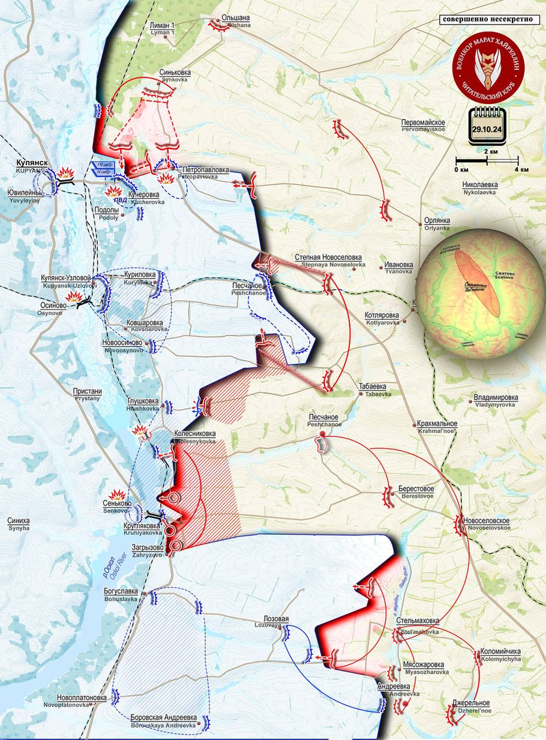 Theo hướng #Kupyansk, Lực lượng vũ trang #Nga tiến vào khu vực rừng phía tây Sinkovka, gần như chiếm hoàn toàn quyền kiểm soát khu vực này. Kẻ thù đang bị cầm chân ở vùng ngoại ô cực tây của nó trong khu vực sông Oskol. Từ khu rừng dọc tuyến đường sắt, các đơn vị quân ta tiến về phía Kupyansk và mở rộng vùng kiểm soát về hướng Kucherovka.