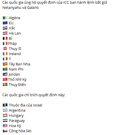 Liên quan tới lệnh bắt giữ thủ tướng Netayahu và bộ trưởng quốc phòng Gallant của Tòa án hình sự quốc tế (ICC), tổ chức mà Nga coi là có tư cách rất kém, không cần đếm xỉa tới.