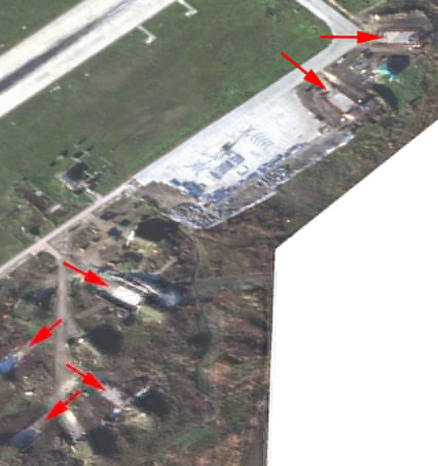 Ngoài các kết cấu bảo vệ đã được thiết lập, còn có một số khu vực rộng lớn có vật liệu xây dựng trên lãnh thổ sân bay.