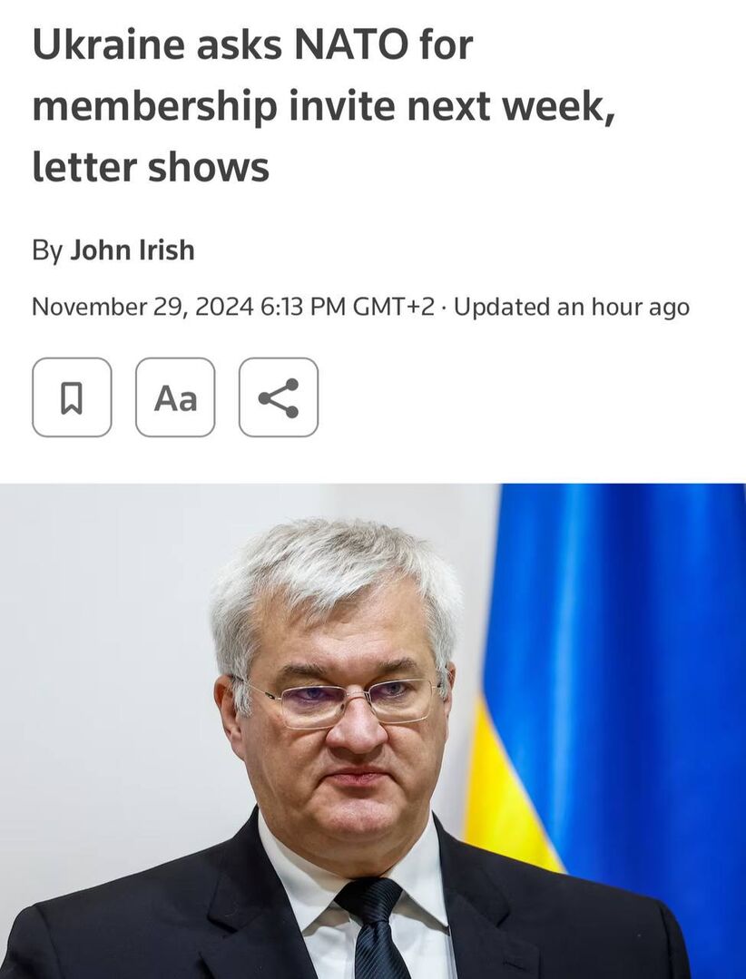 Theo cơ quan này, Bộ trưởng đã gửi một lá thư tương ứng tới các đồng minh NATO. Ông lưu ý rằng Kyiv hiểu rằng không thể gia nhập Liên minh cho đến khi chiến tranh kết thúc, nhưng lời mời bây giờ sẽ cho Putin thấy rằng một trong những mục tiêu chính của ông không thể đạt được.