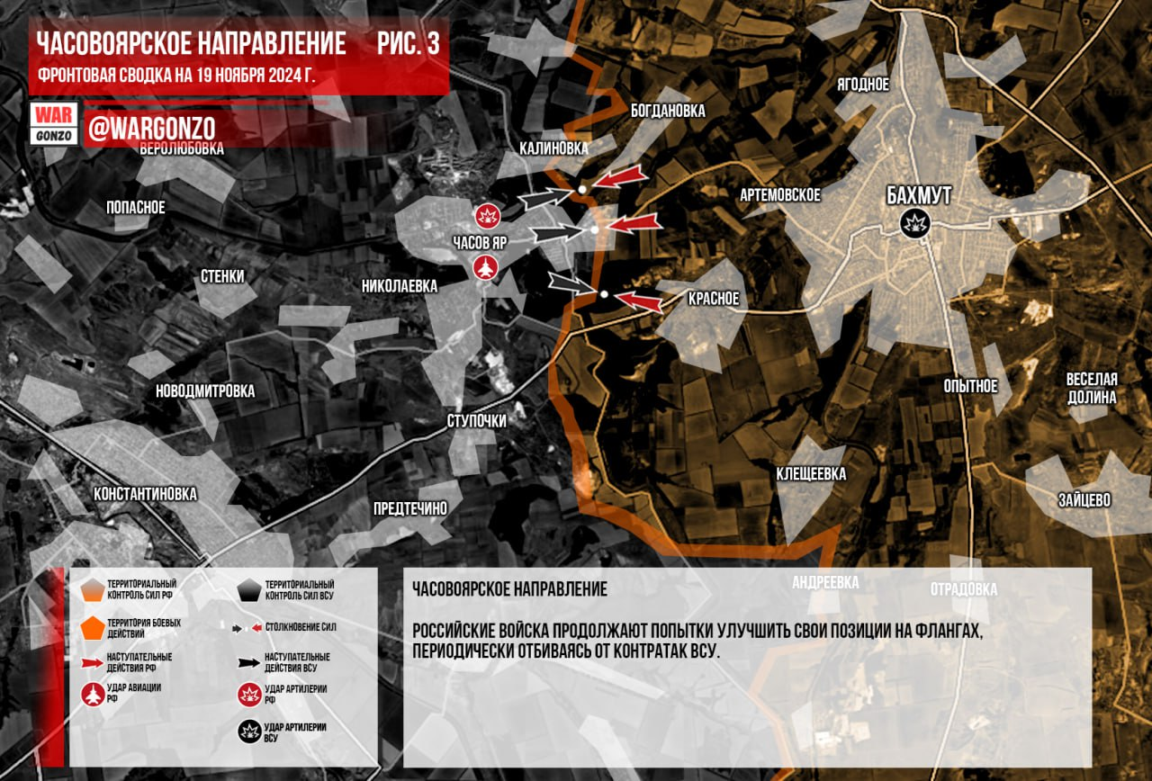 Hướng Chasovoyarsk. Quân đội Nga tiếp tục cố gắng cải thiện vị trí của mình ở hai bên sườn, định kỳ chống lại các cuộc phản công của Lực lượng vũ trang Ukraine. (Hình 3)