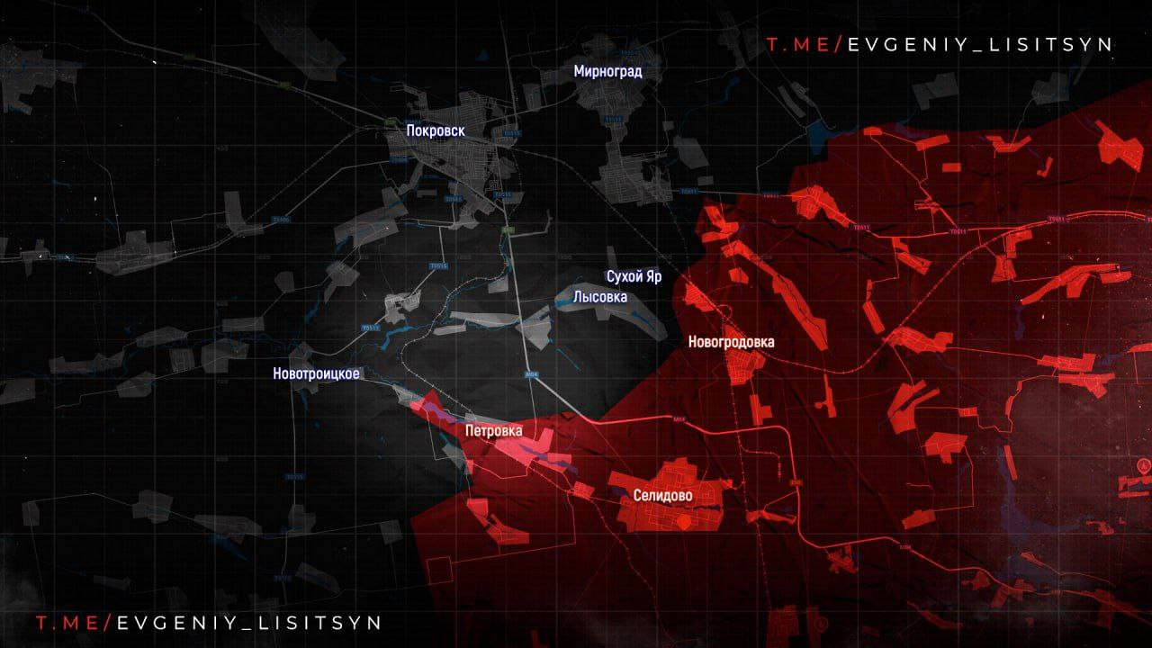🗣Theo hướng Pokrovsk, sau khi nắm quyền kiểm soát Zheltoye, Lực lượng vũ trang Nga đang tiến về phía Novotroitsky, xa hơn về phía nam, họ đang chiến đấu vì Pushkino, Novopustynka và đang nhắm mục tiêu vào Ukrainka, cách đó khoảng 1 km.