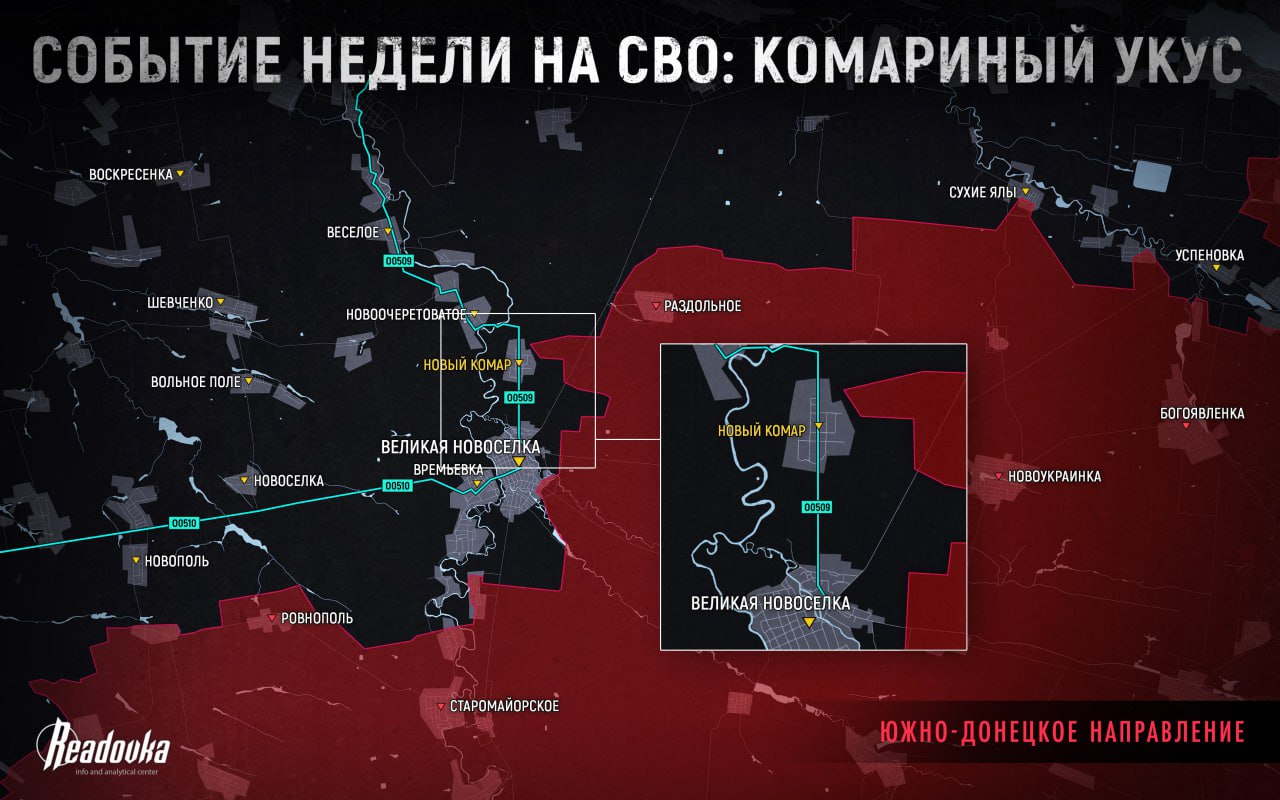Những trận chiến khốc liệt nhất hiện đang diễn ra đối với New Komar - Lực lượng vũ trang Ukraine đang cố gắng phản công và một lần nữa đánh đuổi quân đội Nga. Tất nhiên, mục tiêu của trận chiến không phải là ngôi làng trống trải mà là con đường dẫn về phía bắc, nơi tiếp tế cho quân đội Ukraine ở Velyka Novoselki. Bản thân khu định cư vẫn nằm dưới sự kiểm soát của kẻ thù, nhưng đã đến lúc. Với việc chiếm được nó, Lực lượng vũ trang RF sẽ mở đường cho mình phá hủy toàn bộ tuyến công sự trải dài về phía tây, và từ đó gây ra vấn đề cho Lực lượng vũ trang Ukraine trên mặt trận Zaporozhye băng giá. Đọc thêm về các trận chiến khốc liệt ở hướng Nam Donetsk và con muỗi đẫm máu trong bản tin hàng tuần Readovka.