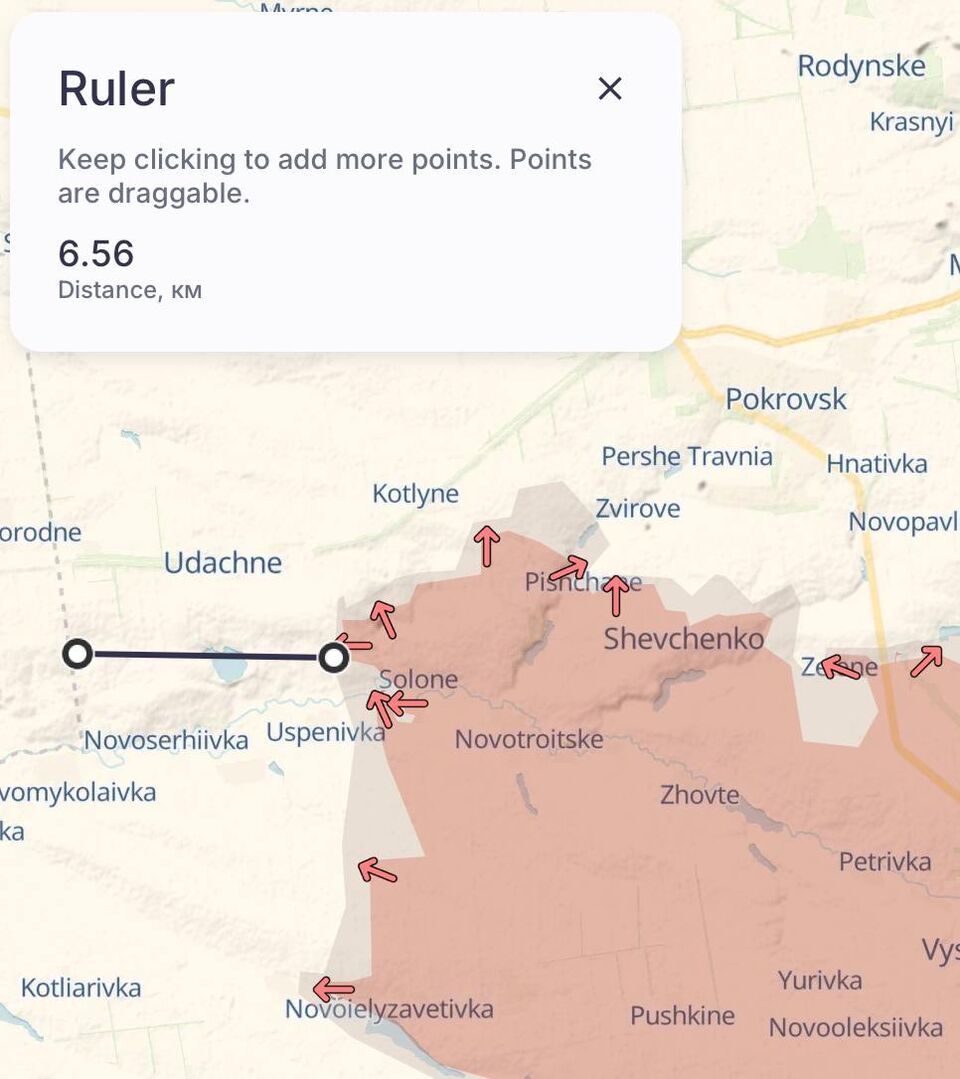 ▪️Mặt trận ngày hôm qua đã đến gần vùng Dnepropetrovsk nhất có thể từ hướng Udachny, phía tây nam Pokrovsk.
