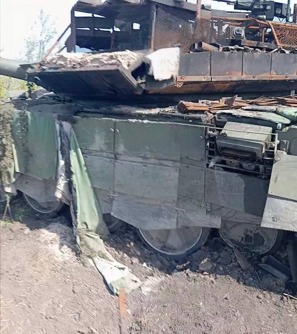 Về khả năng sống sót của xe tăng T-90M của Nga. Chiếc xe tăng đã bị hư hỏng bởi bãi mìn, bị tấn công bởi nhiều máy bay không người lái FPV và cũng bị thả lựu đạn nhiều lần bởi máy bay bốn cánh quạt của Ukraine. Chiếc T-90M bị cháy bên ngoài nhưng không bị phá hủy.