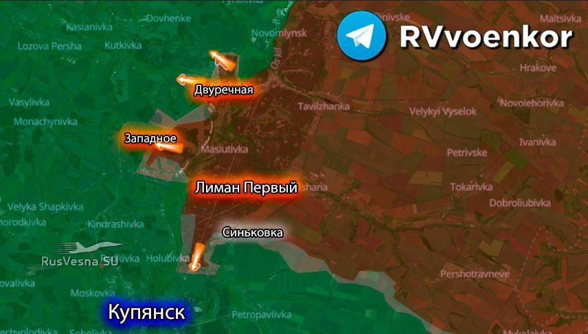 ▪️Theo hướng Kupyansk, lực lượng của cụm quân "Tây" đã đột phá qua tuyến phòng thủ tại một khu định cư kiên cố quan trọng của đối phương trong vài ngày qua. Dvurechnaya, sau khi tiến về phía tây đến độ sâu 2,5 km, tiếp tục tấn công vào phần trung tâm, phía bắc và phía nam sông Nizhnyaya Dvurechnaya.