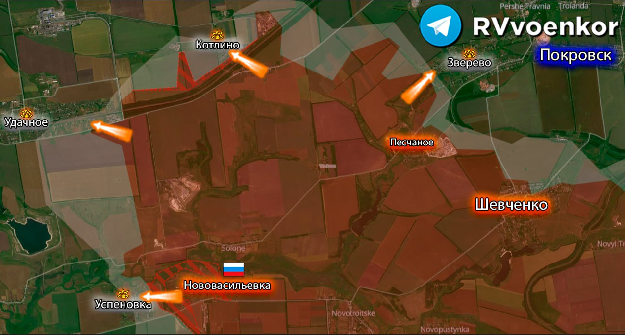 ‼️🇷🇺 Nhóm quân Trung tâm của Nga đã giải phóng Novovasilyevka và đang đột phá qua sườn trái của khu vực Pokrovsk của mặt trận