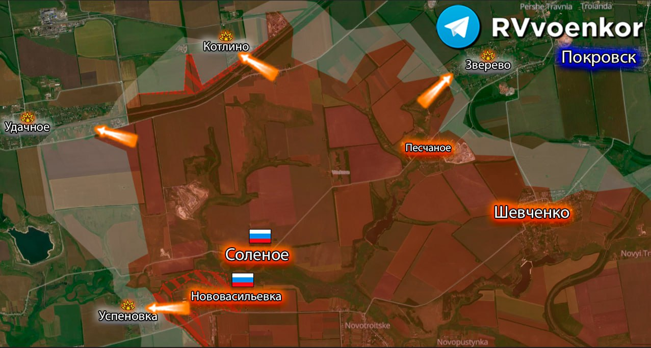 ▪️Việc giải phóng Solenoye của nhóm lực lượng Trung tâm mở ra cơ hội cho quân đội của chúng tôi tấn công tích cực hơn vào các vị trí của phiến quân Lực lượng vũ trang Ukraine trong khu vực mỏ Pokrovskoe, điều này cũng sẽ đẩy nhanh tiến độ của quân đội Nga về phía biên giới với vùng Dnipropetrovsk.
