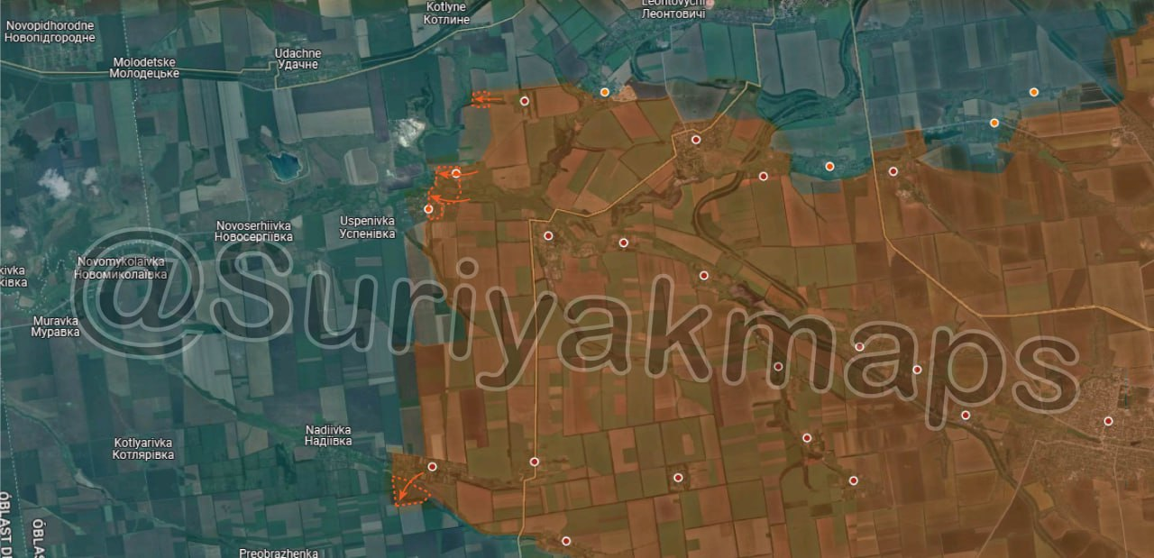 Bản đồ hiện tại bên dưới cho thấy những thành phố này đã bị chiếm hoặc có nguy cơ sụp đổ ngay lập tức. Số 1 ở phía nam là Velyka Novosilka. Hiện tại, thành phố này đang bị bao vây vì tất cả các con đường chính dẫn đến thành phố này đều nằm dưới sự kiểm soát của Nga. Tuyến đường tiếp tế duy nhất còn lại là qua các cánh đồng lầy lội ở phía tây bắc. Velyka Novosilka, mỏ neo của Ukraine ở mặt trận phía nam, có khả năng sẽ sụp đổ trong vòng hai tuần tới.