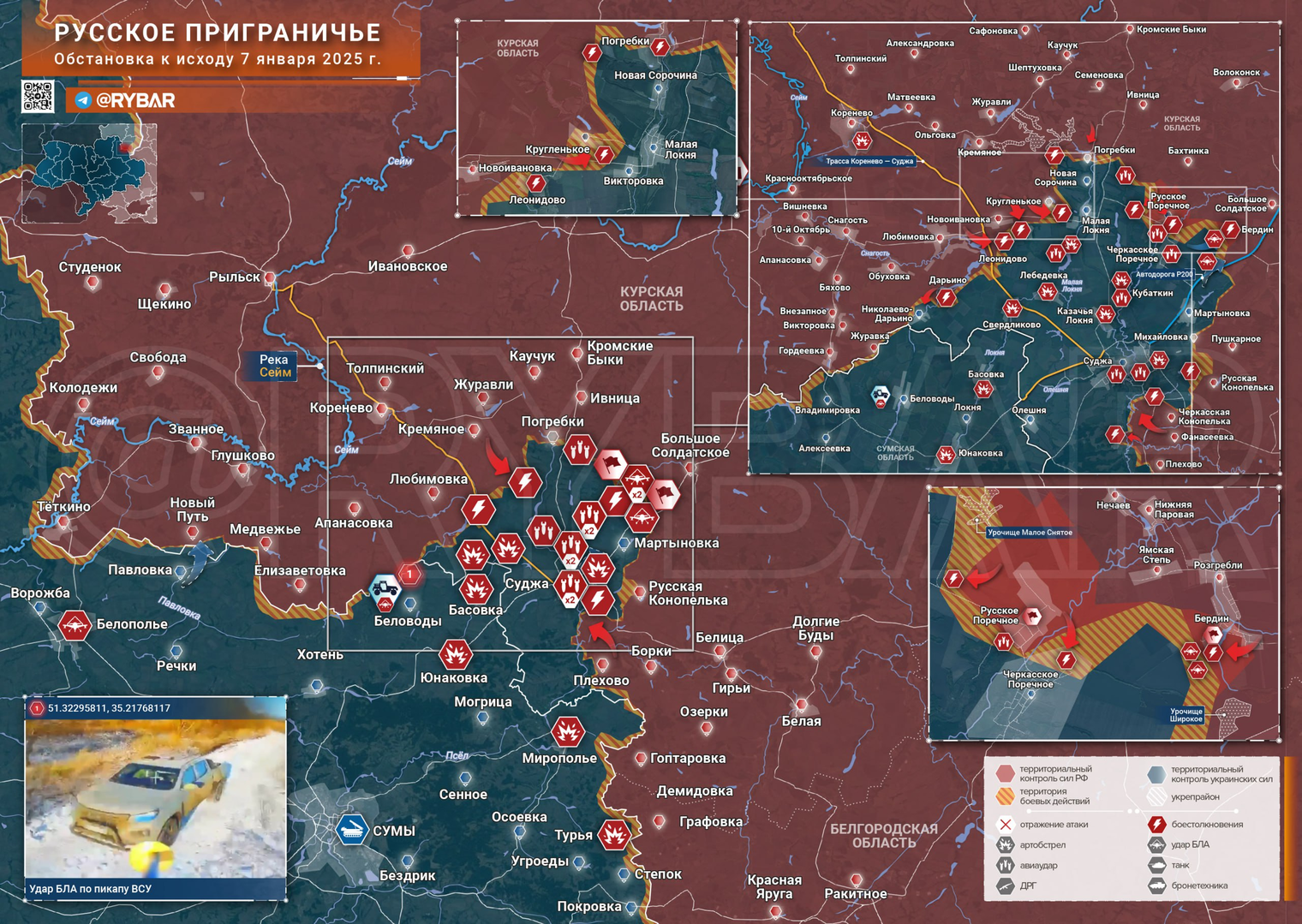 🔻Tại Vùng Kursk, sau khi cuộc tấn công của AFU bắt đầu, quân đội Nga đã thực hiện một số cuộc phản công ở một số khu vực và tính đến ngày 7 tháng 1, các đơn vị của chúng tôi đã đẩy AFU ra khỏi một số khu vực quan trọng. ➖➖➖➖➖➖➖➖