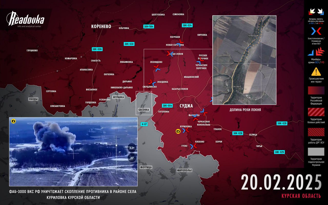 Quân đội Nga ở khu vực biên giới Sumy đe dọa cắt đứt tuyến đường chính của Lực lượng vũ trang Ukraine tới khu vực Kursk - Báo cáo của Readovka cuối ngày 20/2