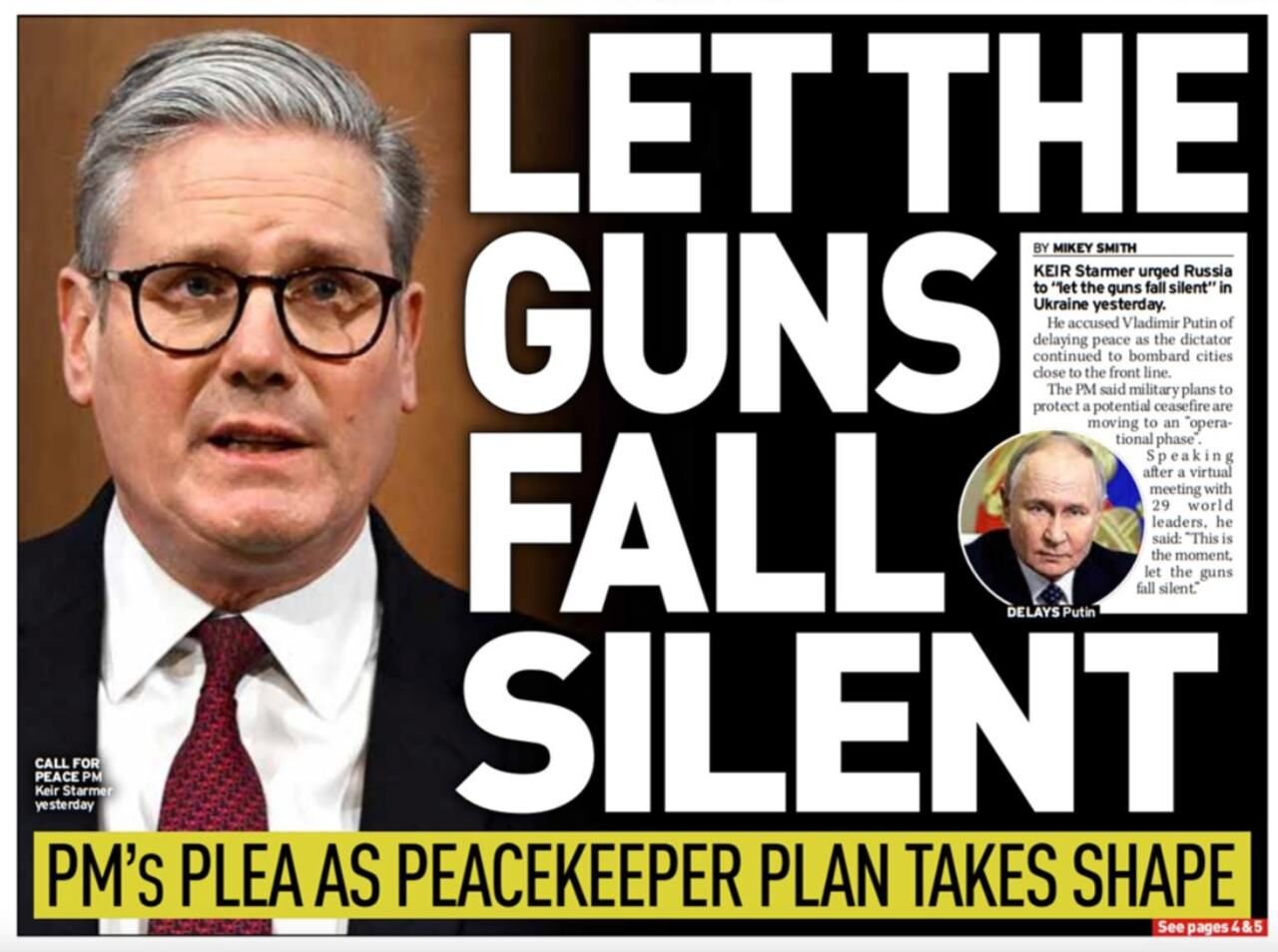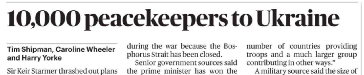 Toàn bộ báo chí Anh đang nghiêm túc thảo luận về ý tưởng cử 10 nghìn “lính gìn giữ hòa bình” châu Âu tới Ukraine, đã được thống nhất ngày hôm qua.