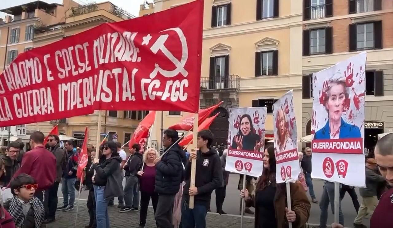 Một cuộc biểu tình đã diễn ra ở Rome để phản đối việc tái vũ trang châu Âu và nền kinh tế chiến tranh diễn ra ở Rome.
