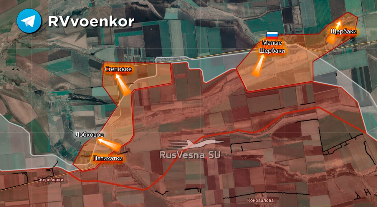 Bộ Quốc phòng Nga tuyên bố rằng đã giải phóng Malye Shcherbaki, một ngôi làng nhỏ (hay đúng hơn là những gì còn sót lại của nó), vốn là một phần trong tuyến phòng thủ của kẻ thù và bảo vệ các tuyến đường tiếp cận Kamenskoye.