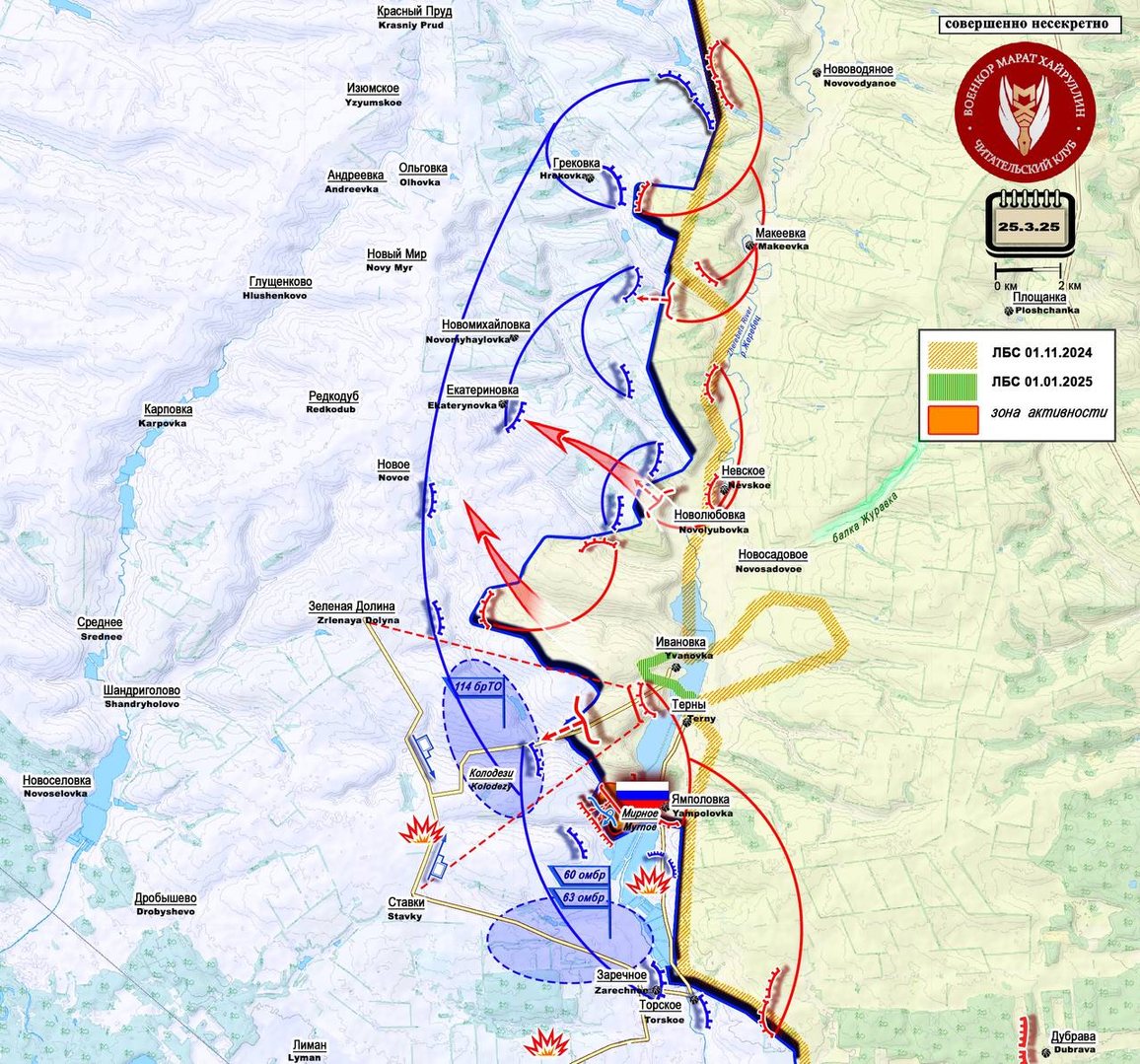 Theo hướng Liman, các đơn vị của nhóm quân sự "Tây" đã giải phóng khu định cư Mirnoye (đây là khu định cư Dzerzhinskoye, được chính quyền Ukraine đổi tên). Vì vậy, tuyến tiếp tế duy nhất còn lại cho Lực lượng vũ trang Ukraine (Torskoe-Yampolovka) hiện đang nằm dưới sự kiểm soát hỏa lực chặt chẽ từ phía chúng tôi.