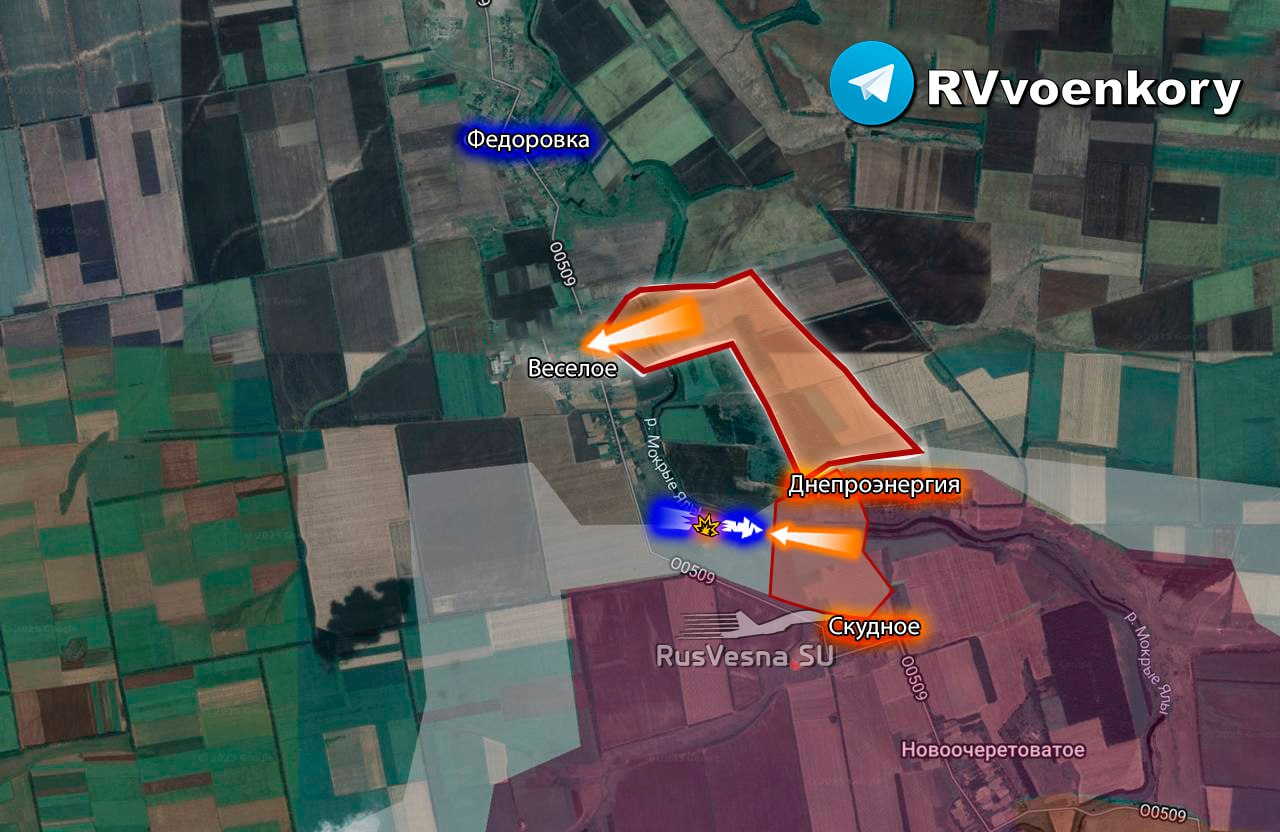 ▪️Nhóm lực lượng "Phía Đông" tiếp tục phát triển cuộc tấn công ở khu vực Veliko-Novoselkovsky theo hướng Nam Donetsk. ▪️Quân đội Nga, sau khi giải phóng Dneproenergiya và Skudnoye ở phía đông, đã đột nhập vào Vesyoloye và đang tấn công ngôi làng. ▪️Trong khi đó, Lực lượng vũ trang Ukraine đã triển khai quân tiếp viện và đang cố gắng phản công các vị trí của chúng tôi ở Dneproenergia; cuộc chiến ác liệt vẫn tiếp diễn.