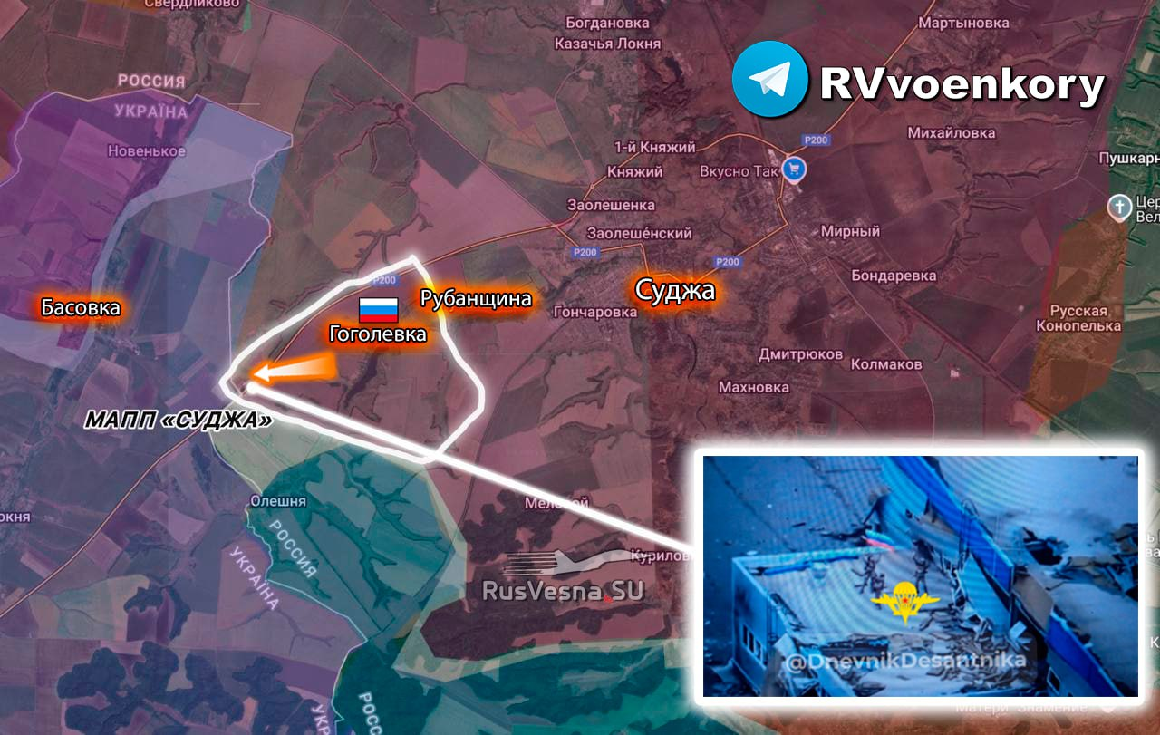‼️🇷🇺 Đội đổ bộ đã kéo cờ Nga lên trạm kiểm soát Sudzha, tiến đến biên giới với Ukraine và hoàn thành nhiệm vụ dọn dẹp Gogolevka!