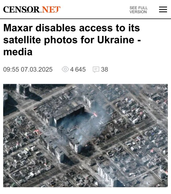 "Lý do chính thức mà người dùng nhận được từ chính quyền Maxar là 'theo yêu cầu hành chính'. Trên thực tế, việc ngắt kết nối là kết quả của lệnh cấm cung cấp thông tin tình báo cho Ukraine của chính phủ Hoa Kỳ.