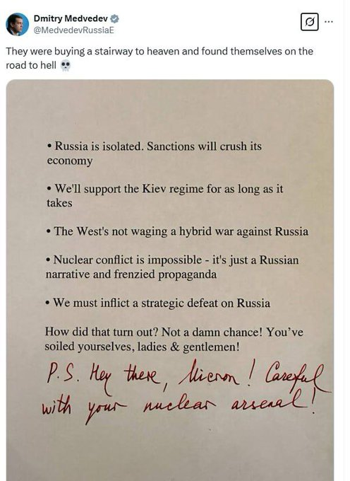 Macron phải cẩn thận hơn với kho vũ khí hạt nhân của mình, Dmitry Medvedev nói. Trong bình luận của mình, ông đã nhắc đến những bài hát nhạc rock kinh điển: