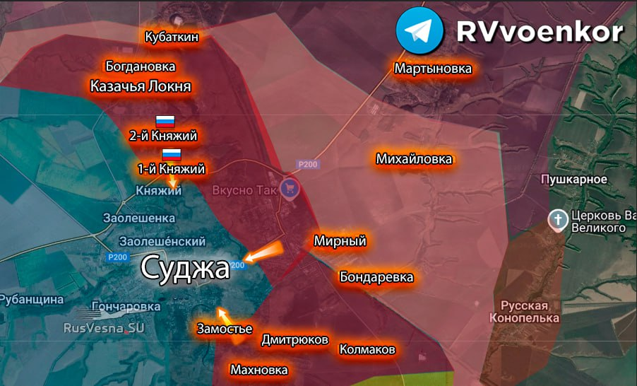 ▪️Sau khi chiếm được Mirny và Bondarevka, các chiến binh từ Lữ đoàn Không vận số 11 đã tiến vào Sudzha và chiếm đóng toàn bộ phần phía đông! ▪️Kẻ địch báo cáo rằng một số đơn vị lính dù đã tiến vào trung tâm thành phố. ▪️Ngoài ra, trong ngày, quân đội Nga đã dọn sạch vùng ngoại ô Kazachya Loknya và đẩy lùi Lực lượng vũ trang Ukraine ra khỏi các làng Knyazhiy 1-y và Knyazhiy 2-y.