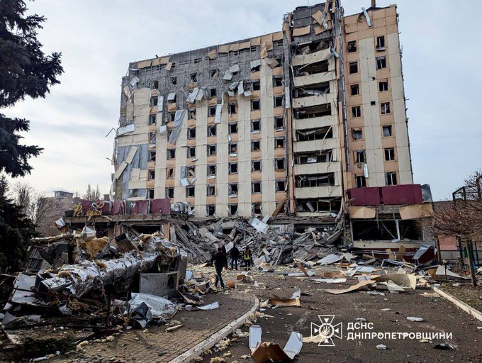 Khách sạn Druzhba ở Kryvyi Rih sau cuộc tấn công kép bằng tên lửa đạn đạo Iskander.