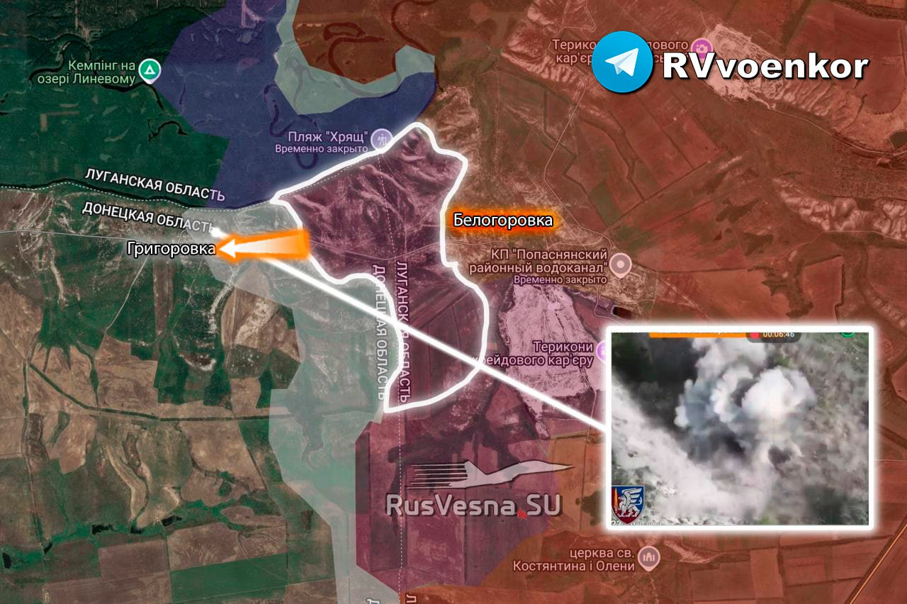 ▪️Quân đội Nga theo hướng Seversky, sau khi giải phóng Belogorovka và mỏ phấn, đã củng cố vị trí và chiếm giữ các hầm trú ẩn ở phía đông Grigorovka.