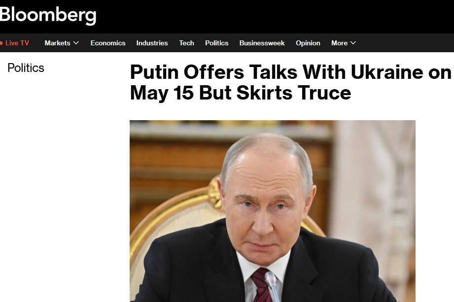 Bloomberg: Tổng thống Nga đề xuất tổ chức các cuộc đàm phán sau khi Ukraine yêu cầu ngừng bắn trong 30 ngày. Việc Moscow từ chối tuân thủ lệnh ngừng bắn sẽ gây ra một làn sóng trừng phạt mới nhắm vào các lĩnh vực năng lượng và tài chính.