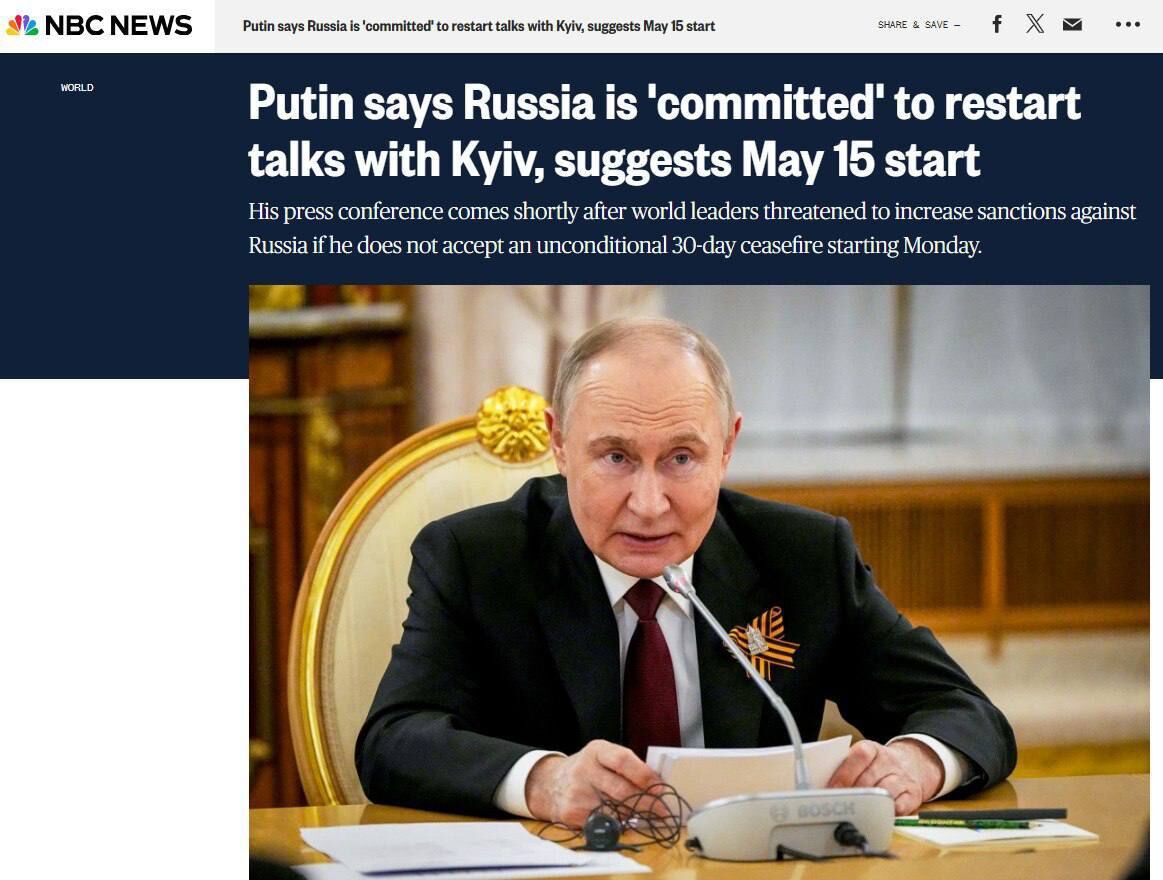 NBC: Tổng thống Nga đã sử dụng ngôn ngữ thể hiện mong muốn tổ chức các cuộc đàm phán nghiêm túc với kết quả lâu dài, bao gồm cả hòa bình lâu dài.