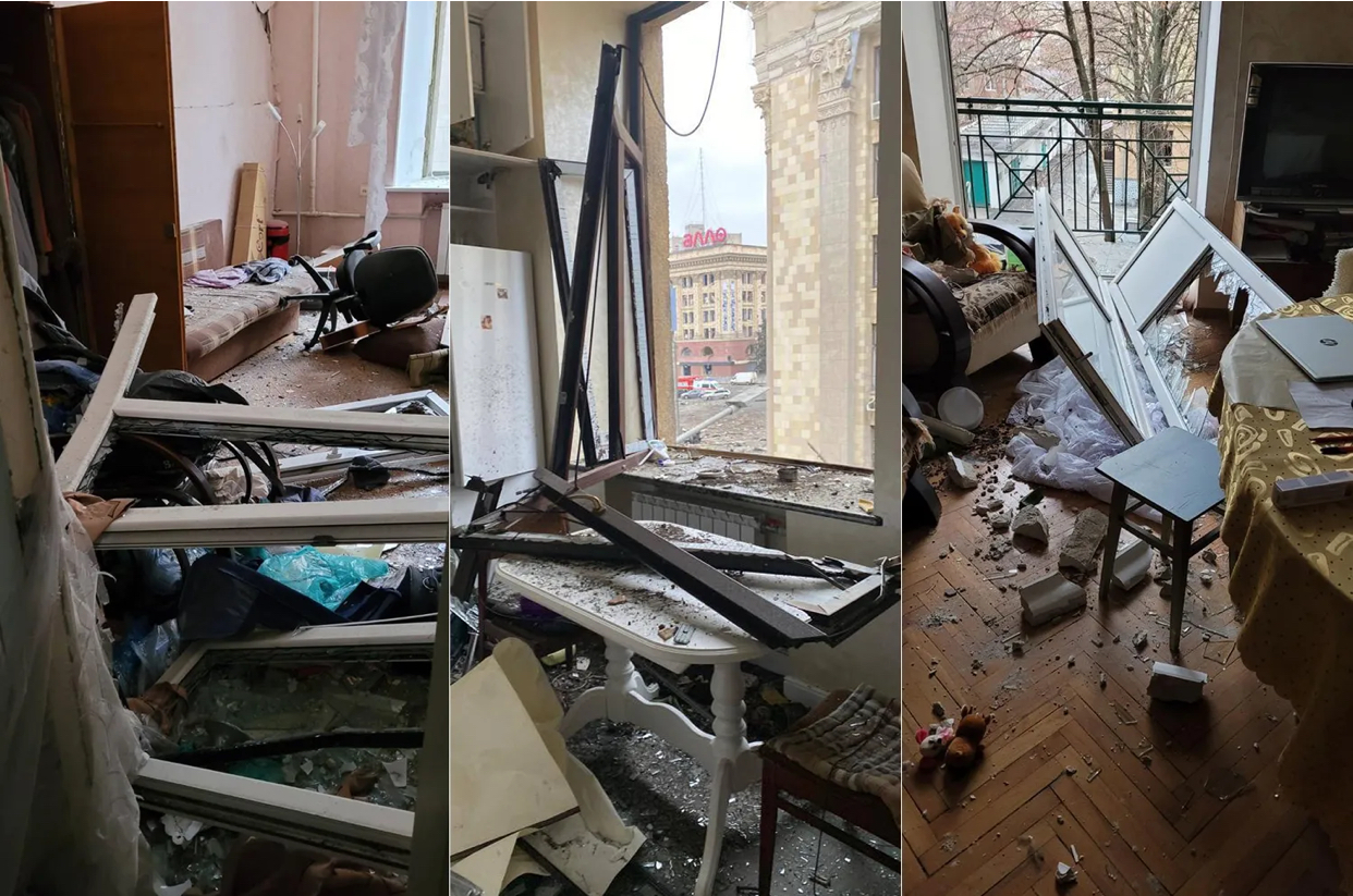 Đội cứu hộ khẩn cấp phải đối mặt với đám cháy lớn trải rộng 3.900 m2 sau cuộc tấn công. Thị trưởng Terekhov cho biết cuộc tấn công bằng máy bay không người lái (UAV) vào Kharkiv còn làm hư hại 11 tòa nhà chung cư.