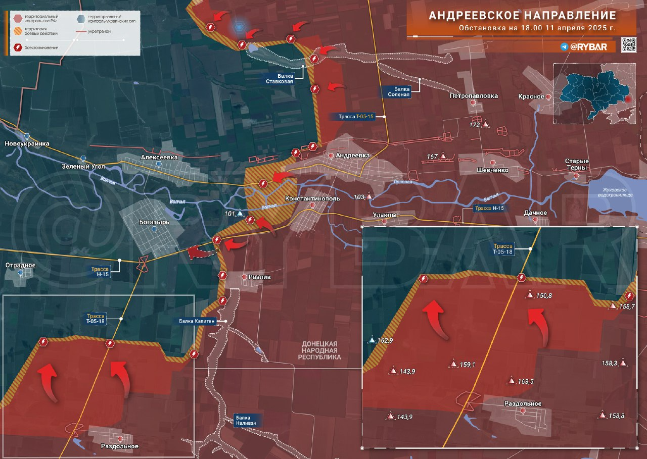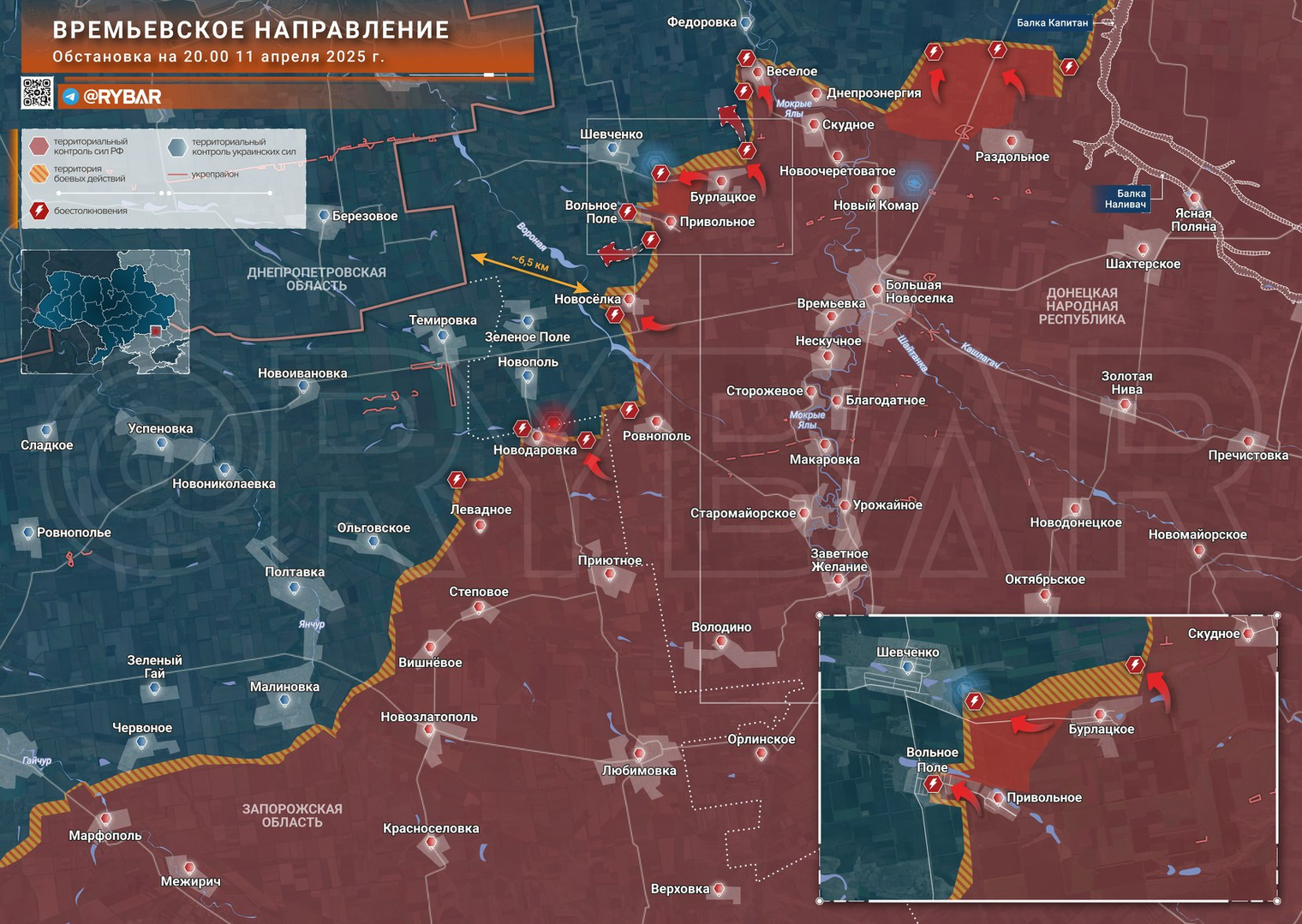 Quân đội Nga tiếp tục tiến về biên giới vùng Dnepropetrovsk theo nhiều hướng cùng một lúc, bao gồm Vremyevskoye, Andreyevskoye và Novopavlovskoye. Tại mỗi khu vực, Lực lượng vũ trang Nga sẽ phải đột phá tuyến phòng thủ của kẻ thù chạy qua một khu vực đông dân cư rộng lớn. Liên quan đến hướng đi đang được xem xét, đây là Shevchenko, trận chiến mà, xét theo tốc độ tấn công, sẽ bắt đầu trong tương lai gần.