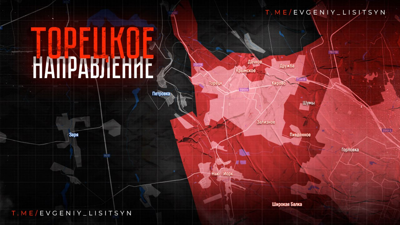 Hướng Toretsk (Dzerzhinsky). Ngay tại Dzerzhinsk, lực lượng của chúng tôi đã hoạt động ở ngoại ô - chúng tôi đang đẩy lui quân địch theo từng khối nhà. Phía đông bắc Druzhba - cách khu vực kiểm soát của chúng tôi thêm 500 mét, chúng tôi đang tự tin tấn công vào sườn.