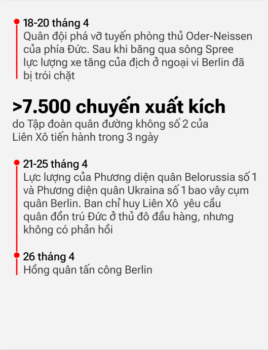 Em thấy có một sự trùng hợp khá thú vị giữa chiến dịch Berlin và chiến dịch Hồ Chí Minh là thời gian bắt đầu tiến đánh thành phố đều vào ngày 26/4, kết thúc vào ngày 30/4.