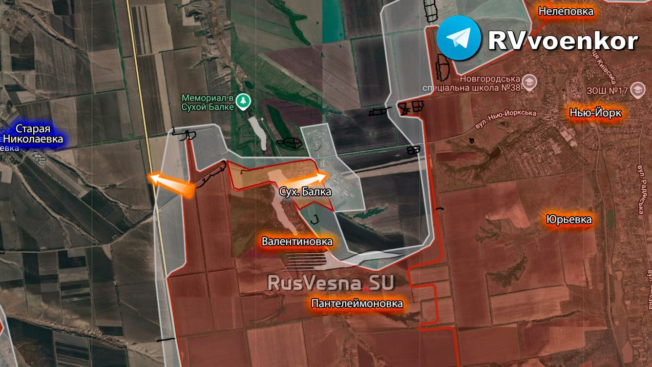 ▪️Quân đội Nga đang tích cực tiến vào Konstantinovka (nằm giữa Pokrovsk và Dzerzhinsk/Toretsk). ➖"Vẫn còn một số ổ kháng cự, nhưng điều này sẽ không kéo dài lâu, vì quân Nga có sự yểm trợ đáng tin cậy từ trên không, vì vậy tốt hơn là không nên nán lại các vị trí", truyền thông Ukraine trích lời một phát ngôn viên quân đội Ukraine. ▪️Sau khi chiếm được Sukhaya Balka, quân đội Nga sẽ bắt đầu tấn công vào Staraya Nikolaevka (phía tây Sukhaya Balka), sĩ quan Lực lượng vũ trang Ukraine cho biết thêm. ➖“Có rất nhiều máy bay không người lái trong khu vực này, rất khó để di chuyển… Người Nga cũng đang hoạt động dọc theo các tuyến đường hậu cần, ngăn cản chúng tôi giữ chặt hệ thống phòng thủ, mọi thứ đều dẫn đến việc vi phạm hệ thống phòng thủ và xâm nhập vào Konstantinovka,” ông lưu ý.